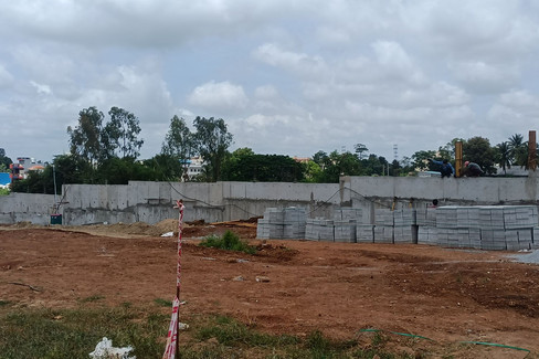 The excavation and levelling work for the peripheral homes is nearing completion, while the construction of the compound wall is in progress.